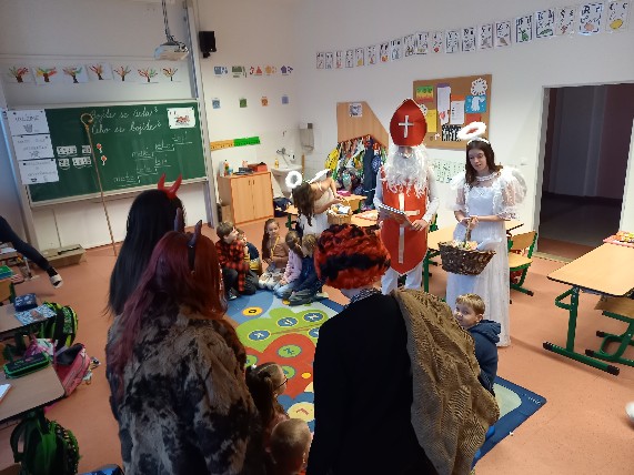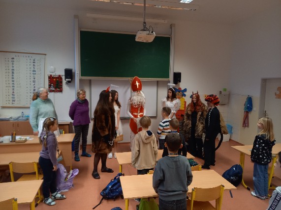 Dnes 5/12/2023 naši školu zase po roce navštívil Mikuláš. Žáci jej potěšili básničkou či písničkou.