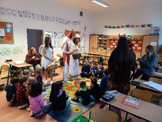 Dnes 5/12/2023 naši školu zase po roce navštívil Mikuláš.