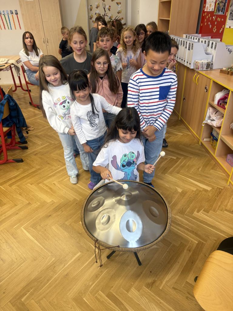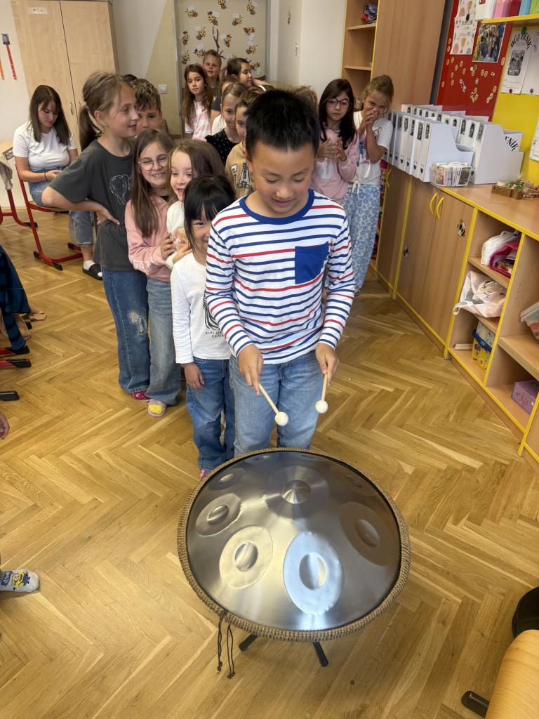 Třída 2.B v rámci hodiny HV si vyzkoušela hrát na Handpan, který má škola ve své sbírce hudebních nástrojů. Každý si mohl zahrát svoji skladbu, kterou si vymyslel.